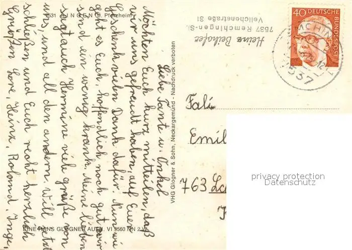 Singen Remchingen Kategorie Alte Ansichtskarten Postkarten bx62364 Singen_Remchingen Kirche Fachwerkhaus Stadtansichten Singen Remchingen postalisch gelaufen 1972 Erhaltung siehe scans [KathaD81]