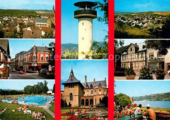 AK / Ansichtskarte Sinzig Panorama Westturm Teilansichten Freibad Barbarossa Schloss Rheinpartie Sinzig