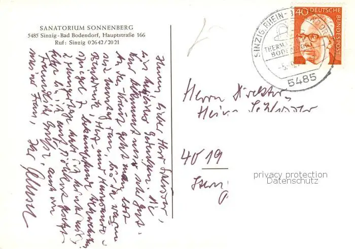 Sinzig Sanatorium Sonnenberg Sinzig postalisch gelaufen 1976 Erhaltung siehe scans [WerneD78] WernPID7