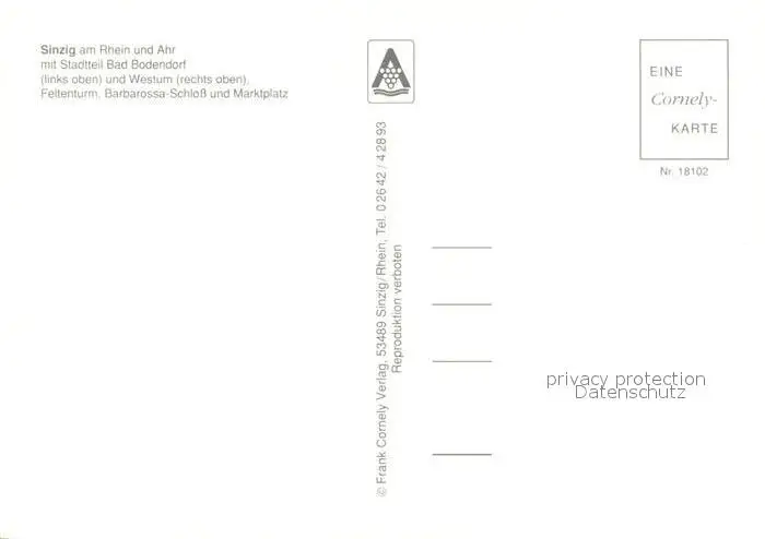 Sinzig mit Bad Bodendorf und Westum Feltenturm Barbarossa Schloss und Marktplatz Sinzig postalisch nicht gelaufen nach 1965 Erhaltung siehe scans [WerneD78] WernPID7