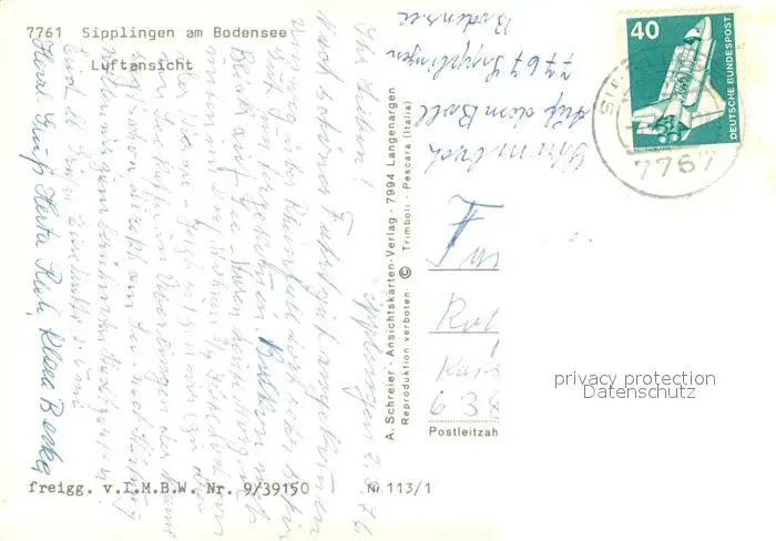Sipplingen_Bodensee Fliegeraufnahme Sipplingen Bodensee postalisch gelaufen 1976 Erhaltung siehe scans [WerneD78] WernPID7