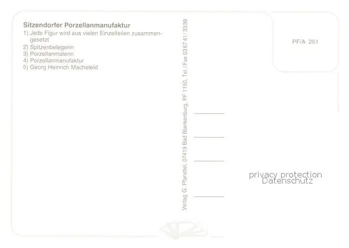Sitzendorf_Thueringen Porzellanmanufaktur Spitzenbelegerin Georg Heinrich Macheleid Sitzendorf Thueringen postalisch nicht gelaufen nach 1965 Erhaltung siehe scans [WerneD78] WernPID7