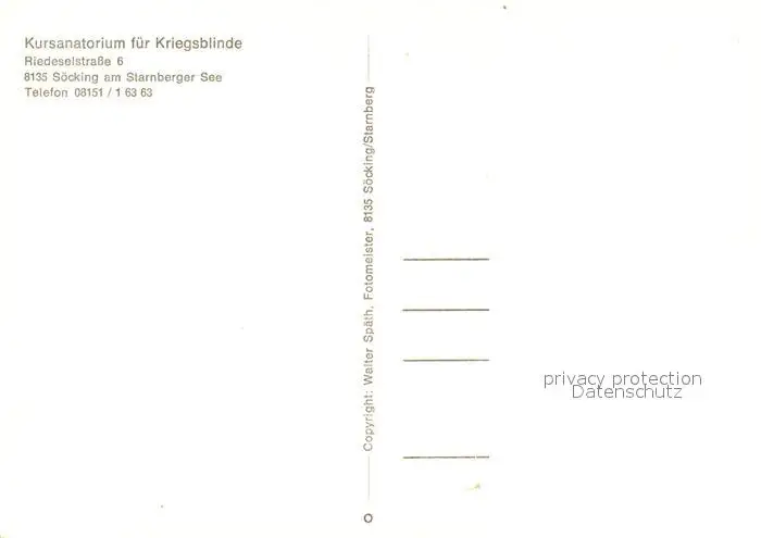 Soecking_Starnberg Kursanatorium fuer Kriegsblinde Soecking_Starnberg postalisch nicht gelaufen nach 1965 Erhaltung siehe scans [LiesaD40] LiesID40