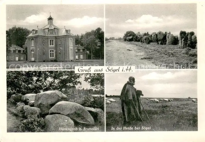 Soegel Jagdschloss Clemenswerth Wacholderhain Huenengrab b. Brunefurt Soegel postalisch gelaufen 1957 Erhaltung siehe scans [LiesaD40] LiesID40