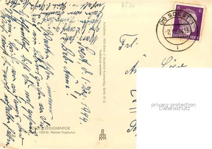 Soest_Arnsberg Osthoventor Soest_Arnsberg postalisch gelaufen 1944 Erhaltung siehe scans [LiesaD40] LiesID40