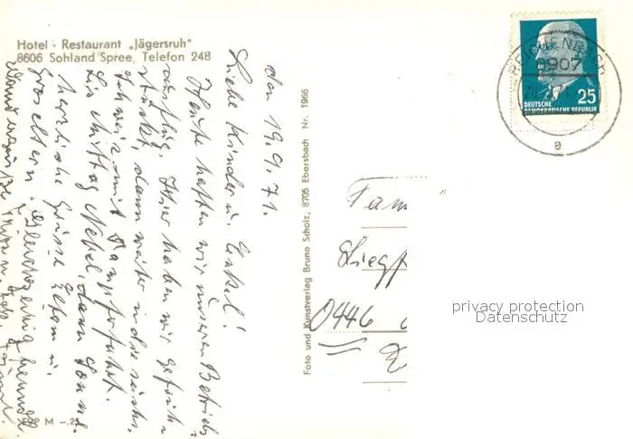 Sohland_Spree Hotel Restaurant Jaegersruh Sohland_Spree postalisch gelaufen 1971 Erhaltung siehe scans [FriedD77] Frierer