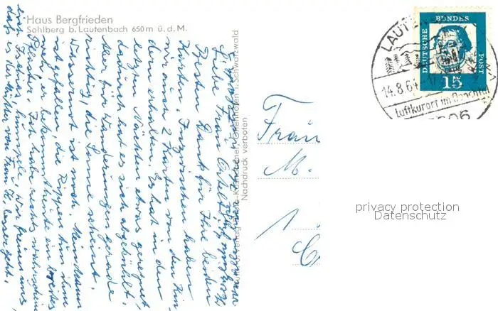 Sohlberg Haus Bergfrieden Sohlberg postalisch gelaufen 1964 Erhaltung siehe scans [NatalD47] NataID47
