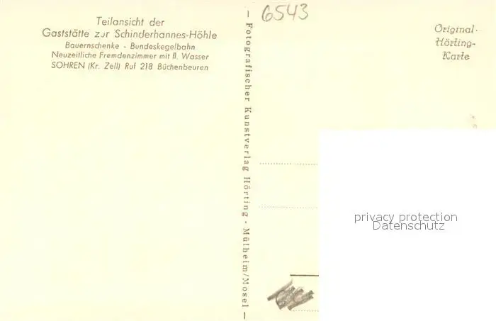 Sohren Gaststaette zur Schinderhannes-Hoehle Rebellen-Bar Sohren postalisch nicht gelaufen 1921-1965 Erhaltung siehe scans [LiesaD40] LiesID40