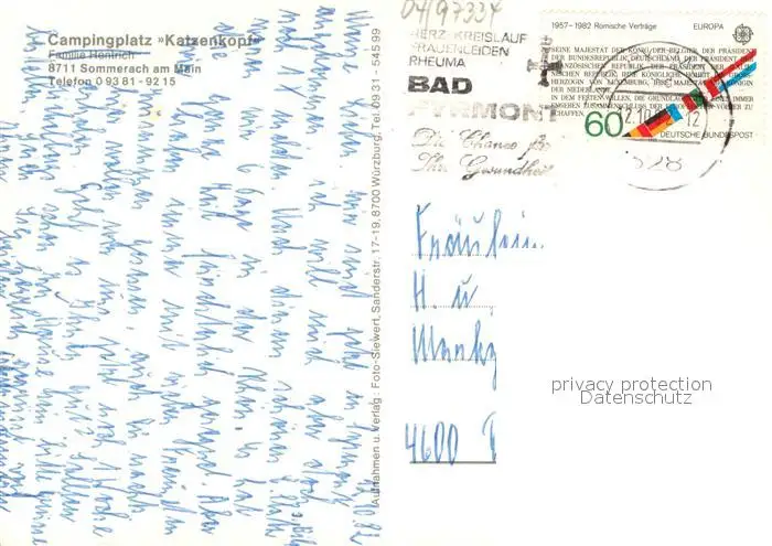 Sommerach Campingplatz Katzenkopf Fliegeraufnahme Bootshafen Sommerach postalisch gelaufen 1992 Erhaltung siehe scans [WerneD78] WernPID7