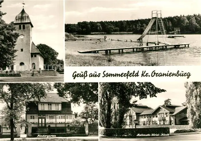 AK / Ansichtskarte Sommerfeld_Kremmen Kirche Schwimmbad Kindergarten Hellmuth Ulrici Klinik Sommerfeld Kremmen
