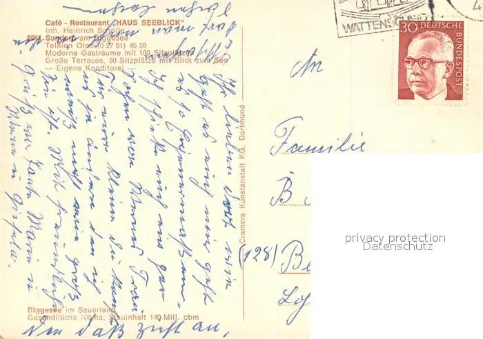 Sondern_Biggesee Cafe Restaurant Haus Seeblick Bar Gastraum Panorama Sondern Biggesee postalisch gelaufen 1973 Erhaltung siehe scans [WerneD78] WernPID7