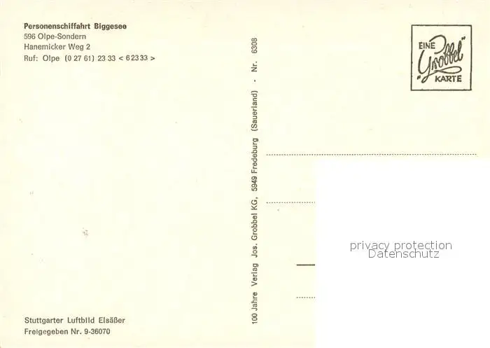Sondern_Biggesee Fliegeraufnahme Personenschiffahrt Biggersee Sondern Biggesee postalisch nicht gelaufen nach 1965 Erhaltung siehe scans [LiesaD40] LiesID40