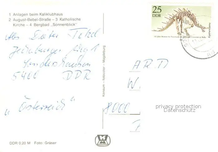 Sondershausen_Thueringen Anlagen beim Kaliklubhaus August Bebel Strasse Kirche Bergbad Sonnenblick Freibad Sondershausen Thueringen postalisch gelaufen 1990 Erhaltung siehe scans [FriedD77] Frierer