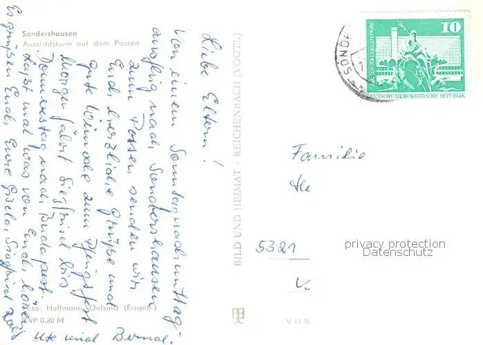 Sondershausen_Thueringen Aussichtsturm auf dem Poessen Sondershausen Thueringen postalisch gelaufen nach 1965 Erhaltung siehe scans [WerneD78] WernPID7