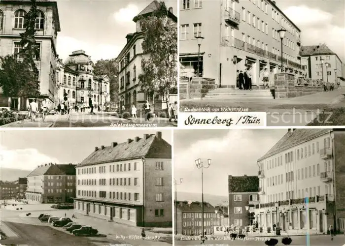 AK / Ansichtskarte Sonneberg_Thueringen Spielzeugmuseum Ladenblock am Wolkanrasen Willi Hoefler Strasse Sonneberg Thueringen