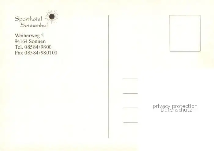 Sonnen_Niederbayern Sporthotel Sonnenhof im Sommer Sonnen Niederbayern postalisch nicht gelaufen nach 1965 Erhaltung siehe scans [FriedD77] Frierer