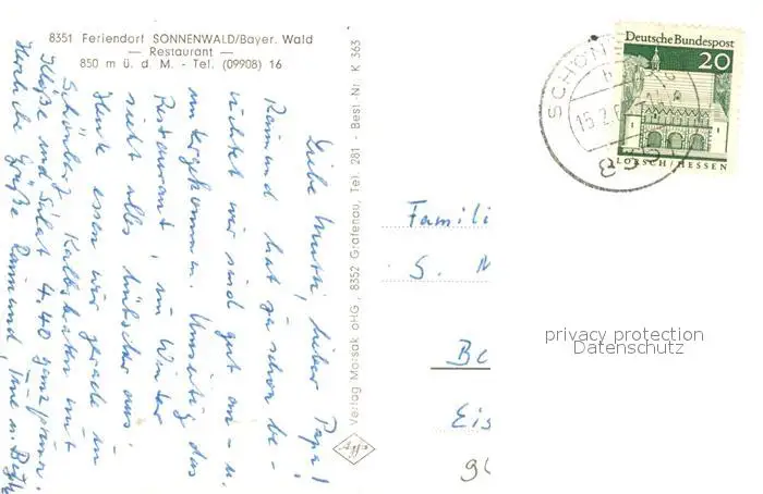 Sonnenwald_Schoefweg Kategorie Alte Ansichtskarten Postkarten sa81325 Sonnenwald_Schoefweg Teilansicht Feriendorf Bayerischer Wald postalisch gelaufen 1965 Erhaltung siehe scans [FriedD77]