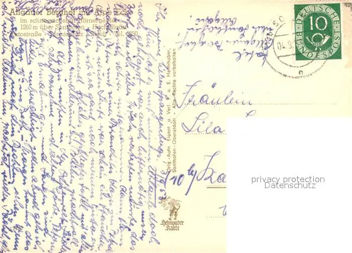 Sonthofen Oberallgaeu Kategorie Alte Ansichtskarten Postkarten bx61204 Sonthofen_Oberallgaeu Allgaeuer Berghof mit Alpe Eck Sonthofen Oberallgaeu postalisch gelaufen 1953 Erhaltung siehe scans [WerneD78]
