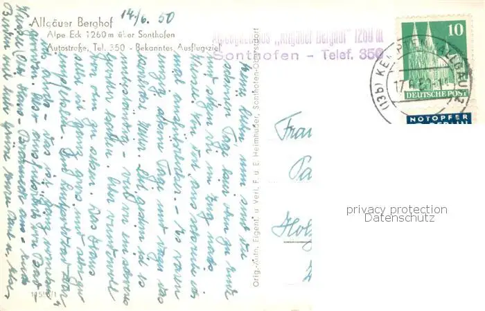 Sonthofen_Oberallgaeu Allgaeuer Berghof mit Stuibe Sonthofen Oberallgaeu postalisch gelaufen 1950 Erhaltung siehe scans [FriedD77] Frierer