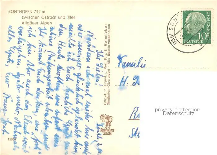 Sonthofen_Oberallgaeu Fliegeraufnahme mit Allgaeuer Alpen Sonthofen Oberallgaeu postalisch gelaufen 1958 Erhaltung siehe scans [WerneD78] WernPID7