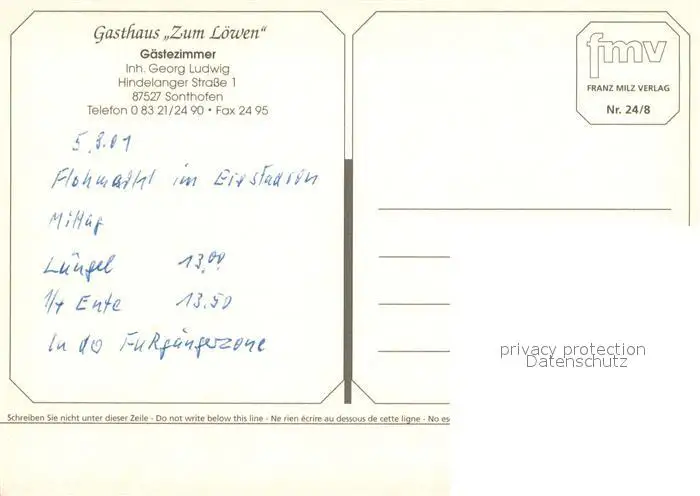 Sonthofen_Oberallgaeu Gasthaus zum Loewen Restaurant Terrasse Wappen Aktien-Brauerei Kaufbeuren Sonthofen Oberallgaeu postalisch nicht gelaufen 2001 Erhaltung siehe scans [FriedD77] Frierer