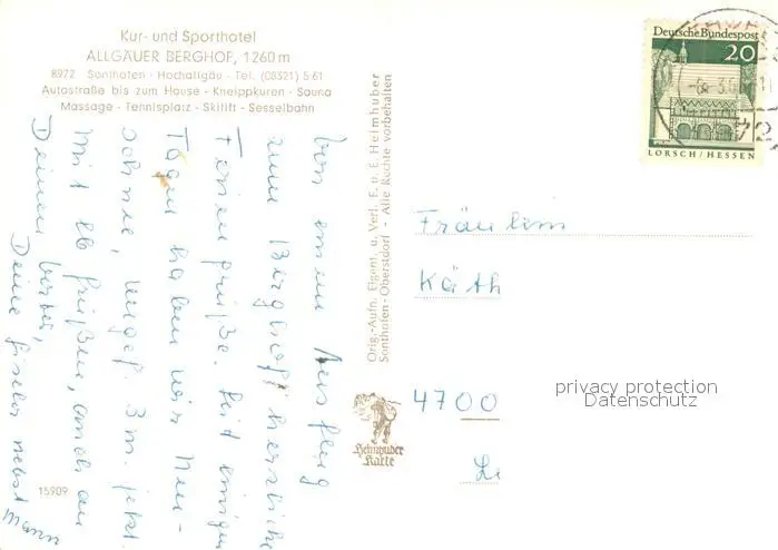 Sonthofen_Oberallgaeu Kur- und Sporthotel Allgaeuer Berghof Winterlandschaft Allgaeuer Alpen Sonthofen Oberallgaeu postalisch gelaufen 1968 Erhaltung siehe scans [FriedD77] Frierer