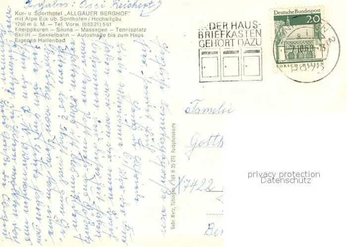 Sonthofen_Oberallgaeu Kur- und Sporthotel Allgaeuer Berghof mit Alpe Eck Sonthofen Oberallgaeu postalisch gelaufen 1988 Erhaltung siehe scans [FriedD77] Frierer