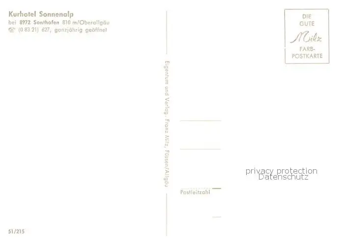 Sonthofen_Oberallgaeu Kurhotel Sonnenalp Sonthofen Oberallgaeu postalisch nicht gelaufen nach 1965 Erhaltung siehe scans [WerneD78] WernPID7