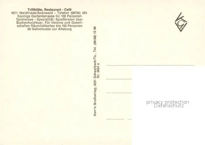 Soonwald Trifth?tte Restaurant Caf? Waldfriede Soonwald postalisch nicht gelaufen nach 1965 Erhaltung siehe scans [LiesaD40] LiesID40