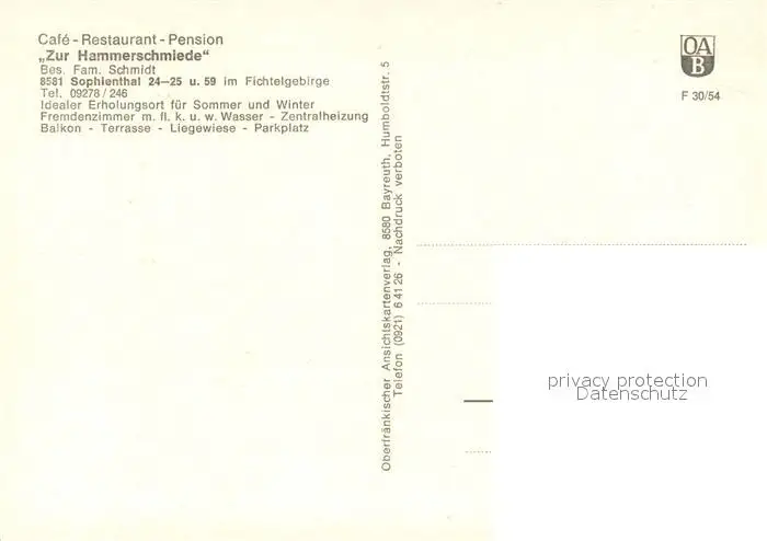 Sophienthal_Oberfranken Cafe Restaurant Pension Zur Hammerschmiede Gaststube Panorama Garten Sophienthal Oberfranken postalisch nicht gelaufen nach 1965 Erhaltung siehe scans [WerneD78] WernPID7