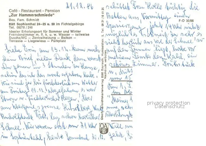 Sophienthal_Oberfranken Cafe Restaurant Pension Zur Hammerschmiede Gaststube Panorama Garten Sophienthal Oberfranken postalisch nicht gelaufen 1986 Erhaltung siehe scans [WerneD78] WernPID7