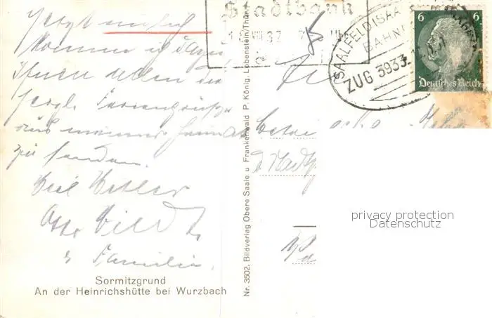 Sormitzgrund An der Heinrichshuette Sormitzgrund postalisch gelaufen 1937 Bahnpost Erhaltung siehe scans [WerneD78] Bahnpost WernPID7