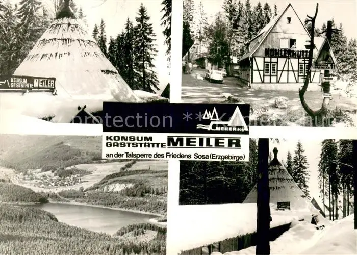AK / Ansichtskarte Sosa_Erzgebirge Konsum Gaststaette Meiler Koehlerhuette Panorama Winteridyll Sosa Erzgebirge