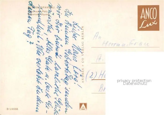 Spandau Falkenseer Platz Skulptur Spandau postalisch nicht gelaufen nach 1965 Erhaltung siehe scans [FriedD77] Frierer