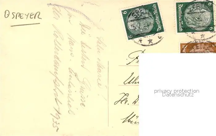 Speyer Rhein Kategorie Alte Ansichtskarten Postkarten bx76976 Speyer_Rhein Bootsfahrt Stadtmauer Kirche Speyer Rhein postalisch gelaufen Erhaltung siehe scans [FriedD77]