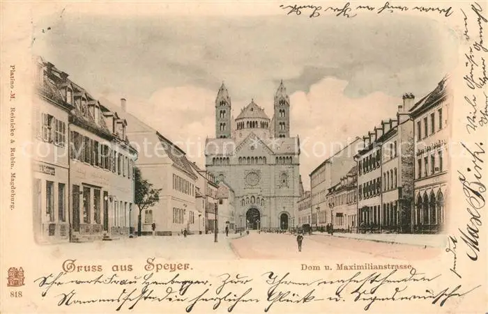 Speyer_Rhein Dom Maximilianstrasse Speyer Rhein postalisch gelaufen 1899 Erhaltung siehe scans [FriedD77] Frierer
