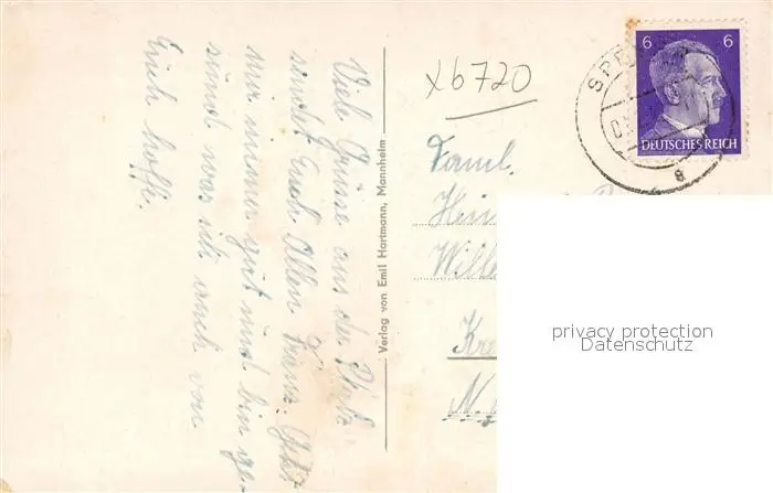 Speyer_Rhein Dom Rheinpartie Speyer Rhein postalisch gelaufen 1942 Erhaltung siehe scans [WerneD78] WernPID7
