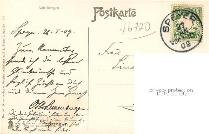 Speyer_Rhein Dom mit Domgarten im Winter Speyer Rhein postalisch gelaufen 1909 Erhaltung siehe scans [WerneD78] WernPID7