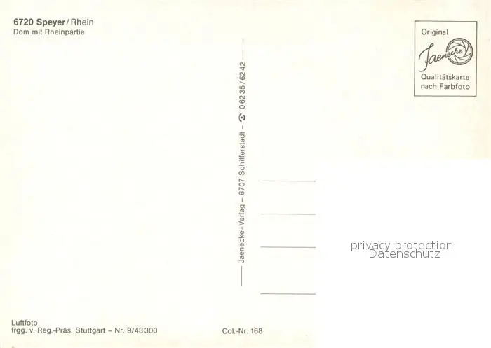 Speyer_Rhein Dom mit Rheinpartie Fliegeraufnahme Speyer Rhein postalisch nicht gelaufen nach 1965 Erhaltung siehe scans [WerneD78] WernPID7