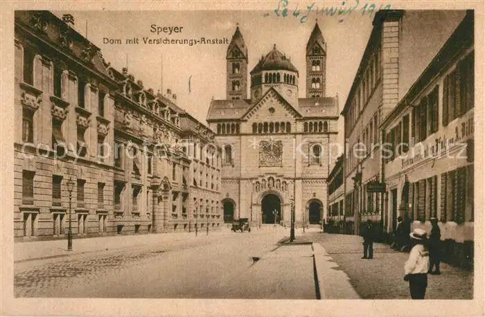 Speyer_Rhein Dom mit Versicherungsanstalt Speyer Rhein postalisch gelaufen 1913 Erhaltung siehe scans [WerneD78] WernPID7