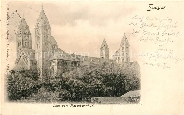 Speyer_Rhein Dom vom Rheinbahnhof Speyer Rhein postalisch gelaufen 1901 Erhaltung siehe scans [WerneD78] WernPID7