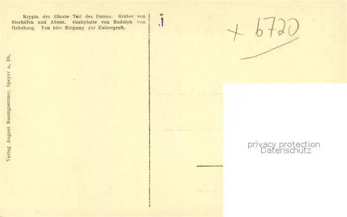 Speyer_Rhein Kaiser Dom Krypta Speyer Rhein postalisch nicht gelaufen 1921-1965 Erhaltung siehe scans [WerneD78] WernPID7