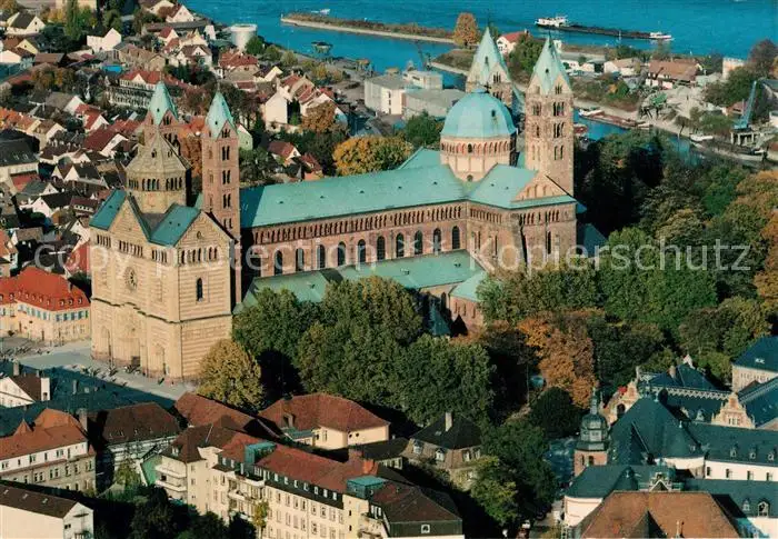 AK / Ansichtskarte Speyer_Rhein Kaiserdom Kathedralkirche Basilika Fliegeraufnahme Speyer Rhein