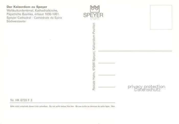 Speyer_Rhein Kaiserdom Kathedralkirche Basilika Fliegeraufnahme Speyer Rhein postalisch nicht gelaufen nach 1965 Erhaltung siehe scans [WerneD78] WernPID7