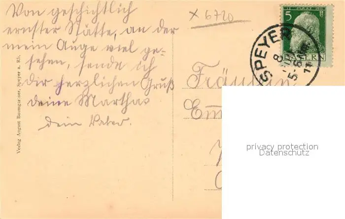 Speyer_Rhein Kaiserdom Speyer Rhein postalisch gelaufen 1911 Erhaltung siehe scans [WerneD78] WernPID7