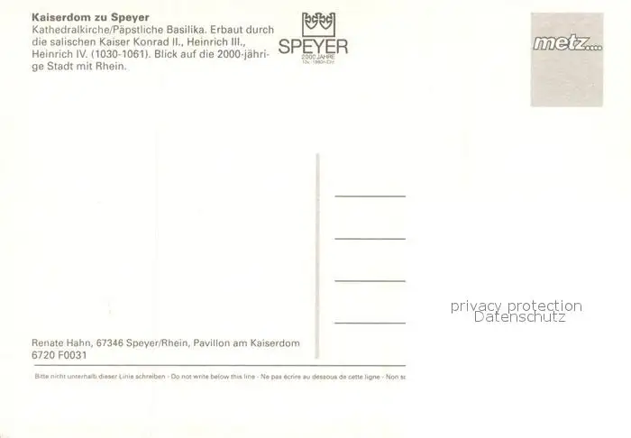 Speyer_Rhein Kaiserdom Speyer Rhein postalisch nicht gelaufen nach 1965 Fliegeraufnahme Erhaltung siehe scans [FriedD77] Fliegeraufnahme Frierer