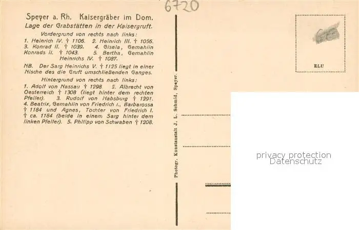 Speyer_Rhein Kaisergraeber im Dom Speyer Rhein postalisch nicht gelaufen 1921-1965 Erhaltung siehe scans [FriedD77] Frierer