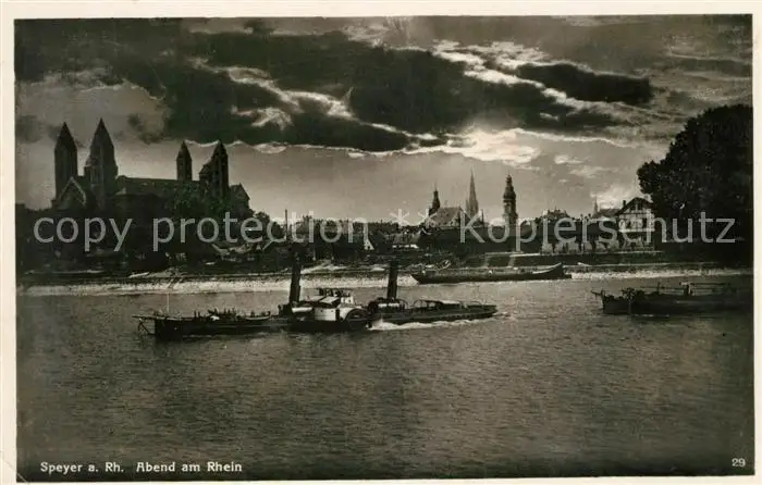 AK / Ansichtskarte Speyer_Rhein Rheinpartie am Abend mit Dom Speyer Rhein