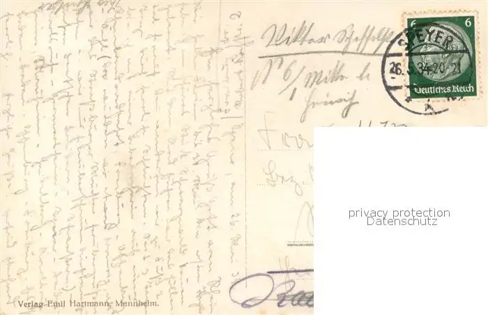 Speyer_Rhein Rheinpartie am Abend mit Dom Speyer Rhein postalisch gelaufen 1934 Erhaltung siehe scans [WerneD78] WernPID7