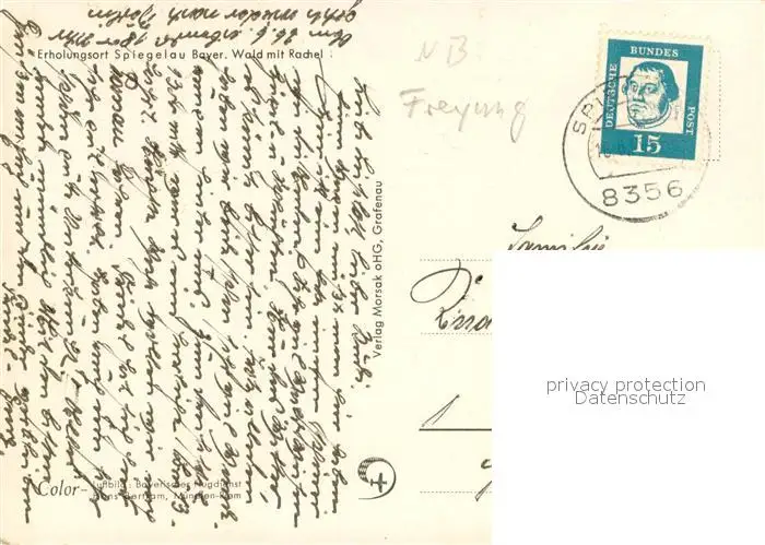 Spiegelau Wald mit Rachel Fliegeraufnahme Spiegelau postalisch gelaufen 1965 Erhaltung siehe scans [WerneD78] WernPID7